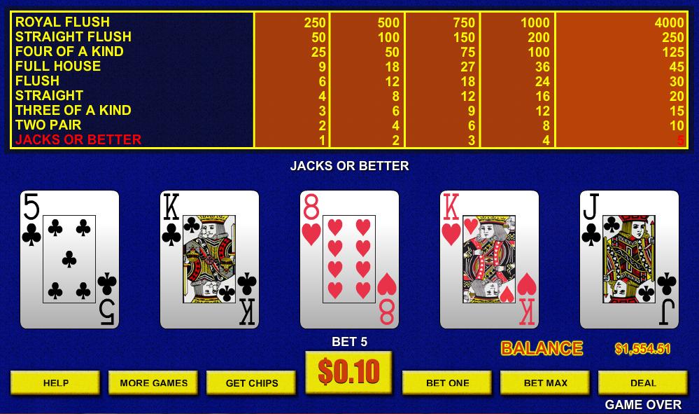 残念なことに、利用できるビデオ ポーカー ゲームは 1 つしかありません。良いニュースは、それが 9-6 Jacks or Betterであり、99.54% のリターンがあるということです。