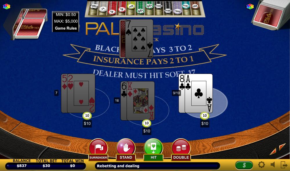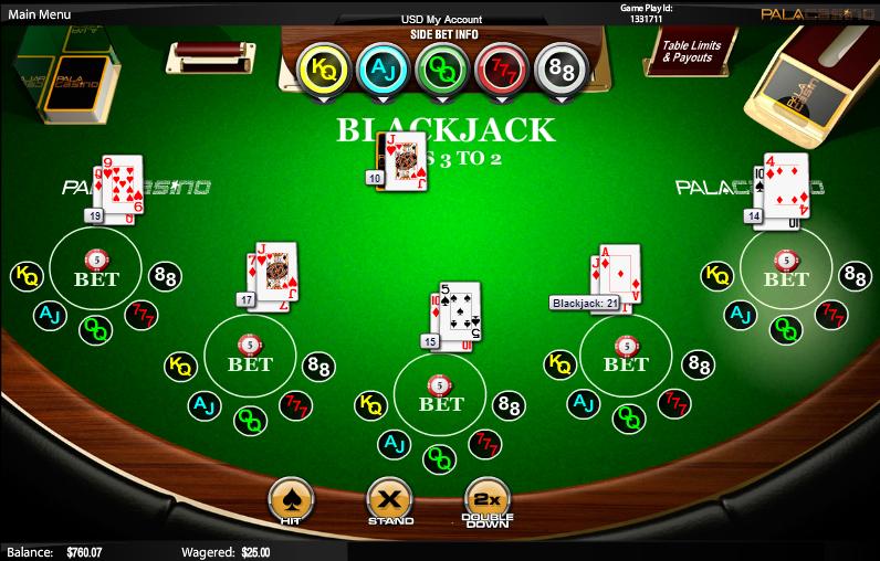 ブラックジャック ゲームは 4 種類あります。最高のオッズは「サイド ベット」ブラックジャック ゲームです。このゲームは、最高のルールだけでなく、5 種類のサイド ベットも備えています。どのゲームでもサイド ベットをすることはお勧めできませんが、Pala ブラックジャックのサイド ベットについてさらに詳しく知りたい場合は、次のリンクからページをご覧ください。