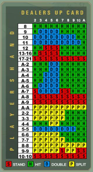 基本戦略カードについては、プレイヤーが 13 から 16 を持ち、ディーラーが 2 を示している場合は明らかに間違いです。カードにはヒットするように書かれています。現実的なルールであれば、スタンドの確率が高くなります。