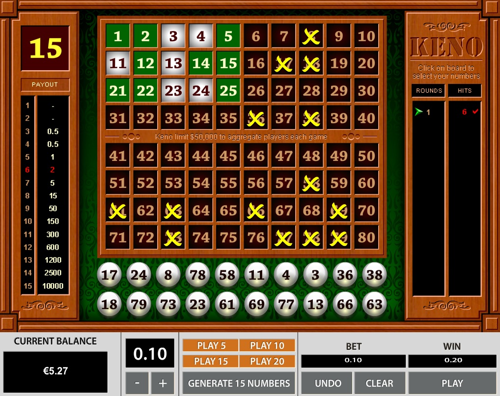 以下は、各ピック数に対するキノのペイテーブルとリターンです。 最高のリターンは、ピック 13 で 94.90% であることに注意してください。