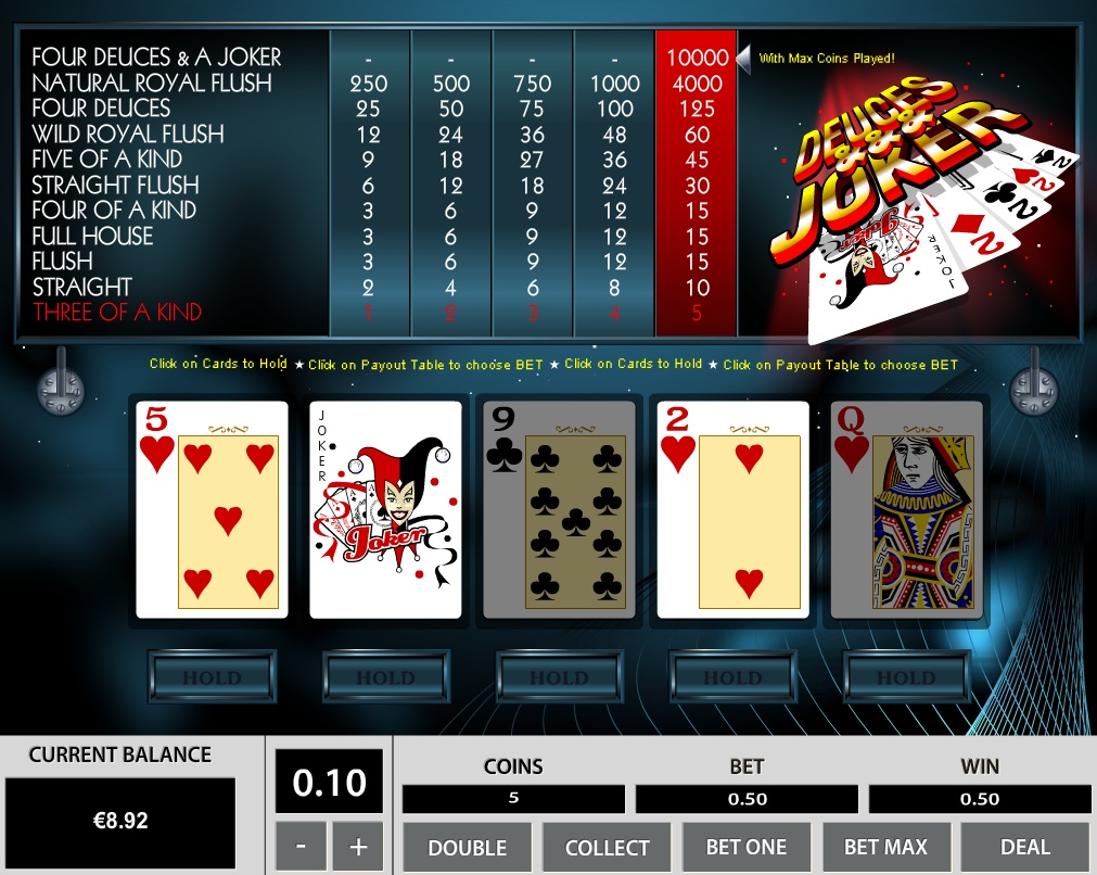 私の知る限り、Pragmatic Games は 3 つのビデオ ポーカー ゲームを提供しています。いずれも、陸上カジノでよく知られているペイ テーブルを備えています。ゲーム プレイは楽しく、リアルです。唯一の不満は、デュース ワイルド ペイ テーブルが他の 2 つに比べてかなりケチなことと、オート ホールド機能が頻繁に誤ったアドバイスを出すことです。