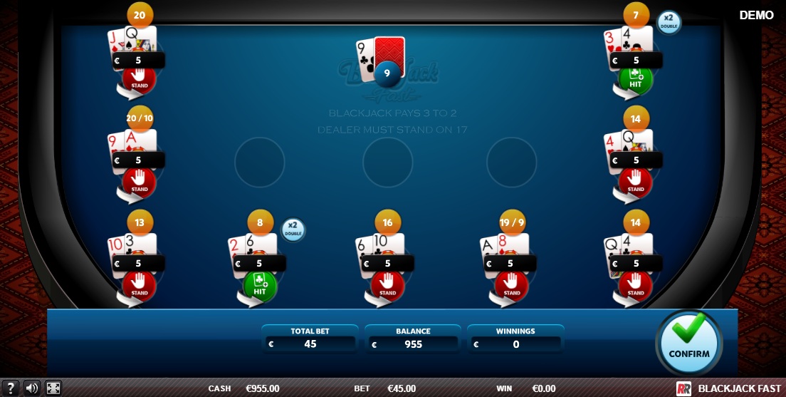 「どうしてブラックジャックのハウスエッジがそんなに高いのか?」と疑問に思う人もいるかもしれません。ダブルやスプリットを一切認めないことで、ハウスエッジは高くなるのです。これは、ラスベガスのバーでよく見かけるひどいルールです。このゲームのもう 1 つの奇妙な点は、最大 12 ハンドまでプレイできると書いてあるのに、最大ベットをしても 9 ハンドしかプレイできないことです。