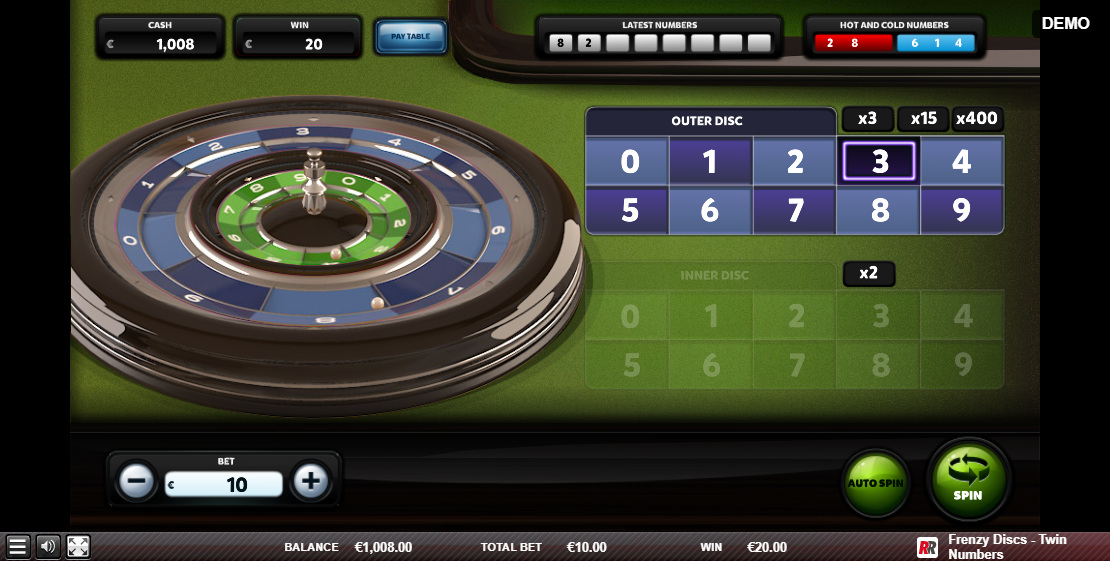 フレンジー ディスクは、ルーレットの 2 つのバリエーションです。どちらも、2 つの同心円状のルーレット ホイールを使用します。ツイン ディスクでは、各ホイールに 10 個のスロットと 1 個のボールがあります。16ボールでは、各ホイールに 25 個のスロットと 8 個のボールがあります。すべてのルールと分析については、いずれかのリンクをクリックしてください。