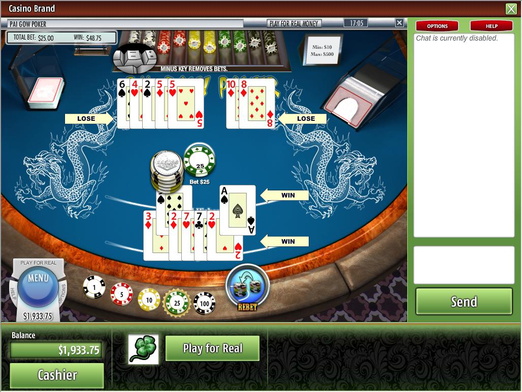 パイゴウ ポーカーは標準ルールで配られます。便利なことに、ハウス ウェイ ボタンがあります。ゲームではハイ ハンドよりも良いロー ハンドを選択できないため、プレイヤーはハンドを台無しにすることはできません。オンライン パイゴウ ポーカーでは通常、ディーラーは常にバンカーです。プレイヤーがハウス ウェイでプレイすると仮定すると、ハウス エッジは 2.72% です。最適な戦略では 2.51% です。
