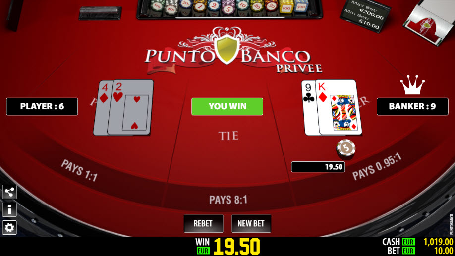 - バンカー — 0.95対1を支払います — ハウスエッジは1.06%です。
